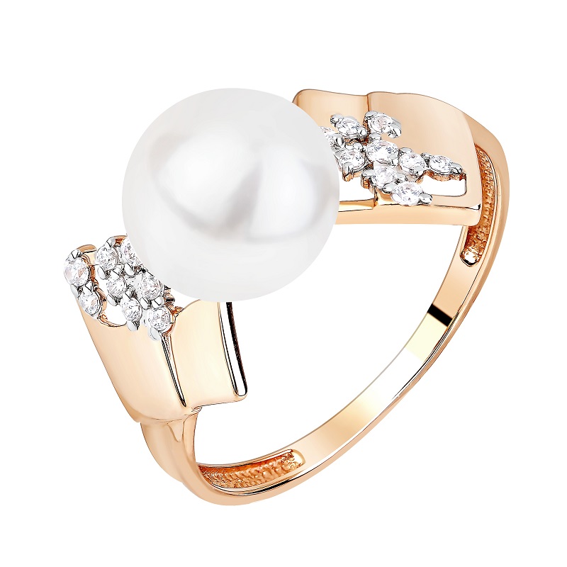 Кольцо из красного золота с жемчугом и фианитами 132533