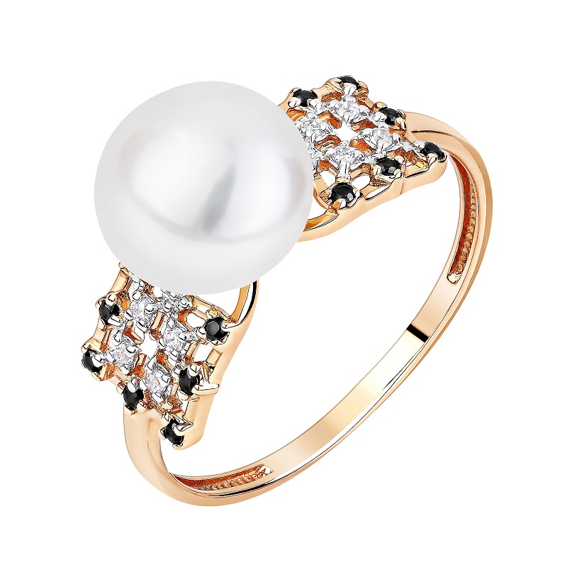 Кольцо из красного золота с жемчугом и фианитами 132535