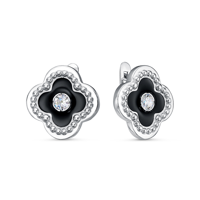 Серьги из серебра с фианитами и эмалью 133328