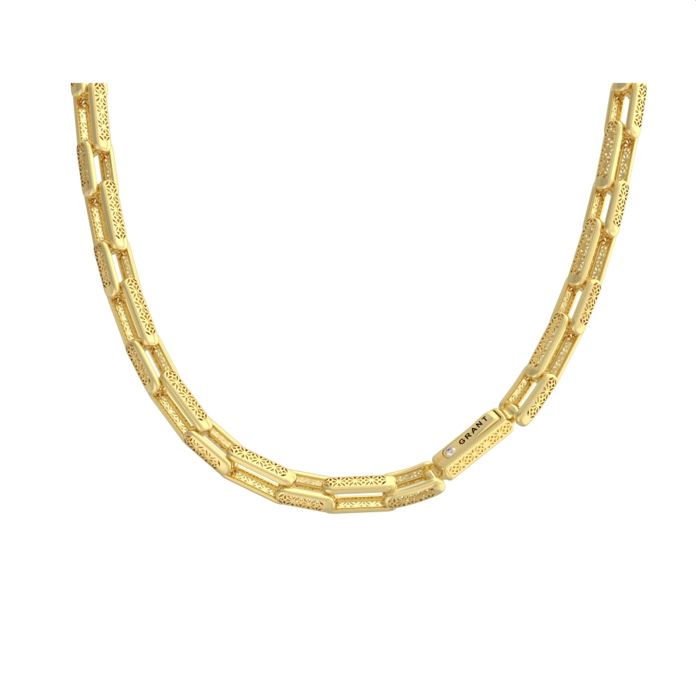 Цепь из желтого золота фантазийное плетение с бриллиантами