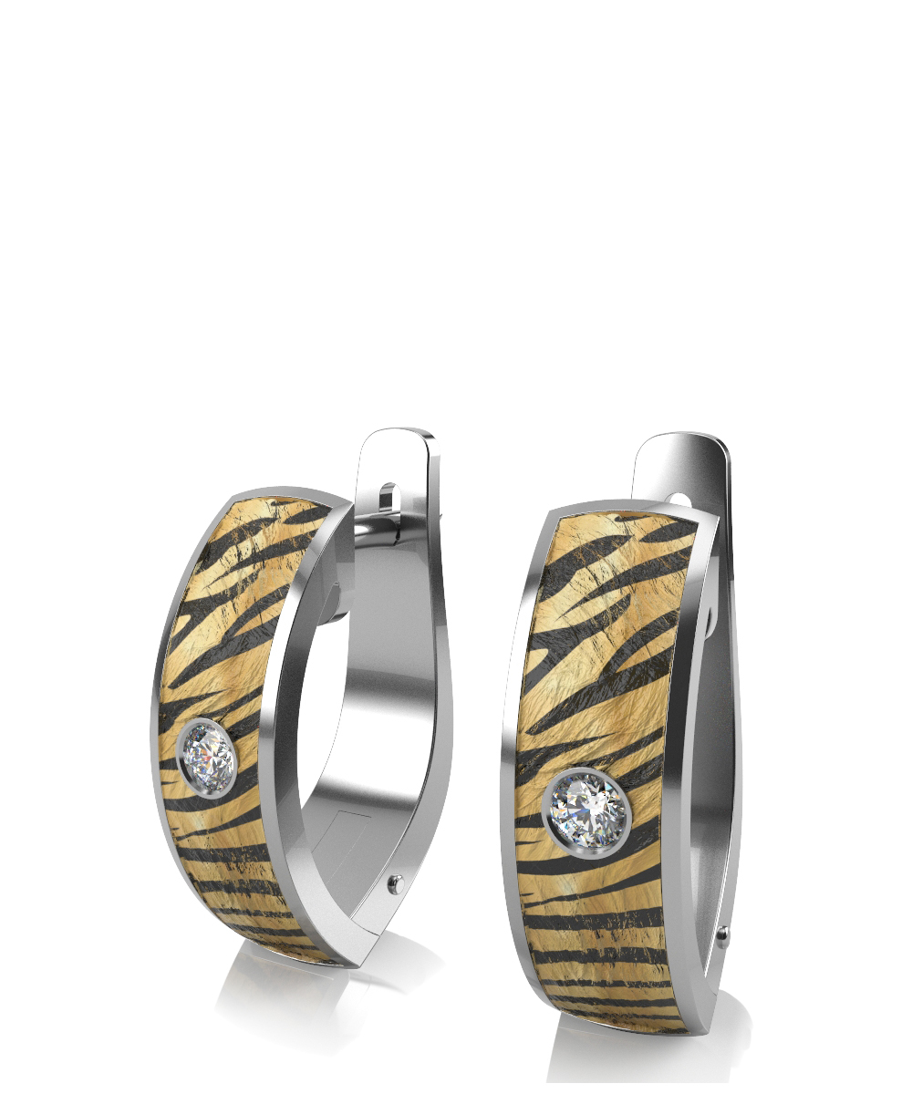 Серьги из серебра с фианитами и керамикой