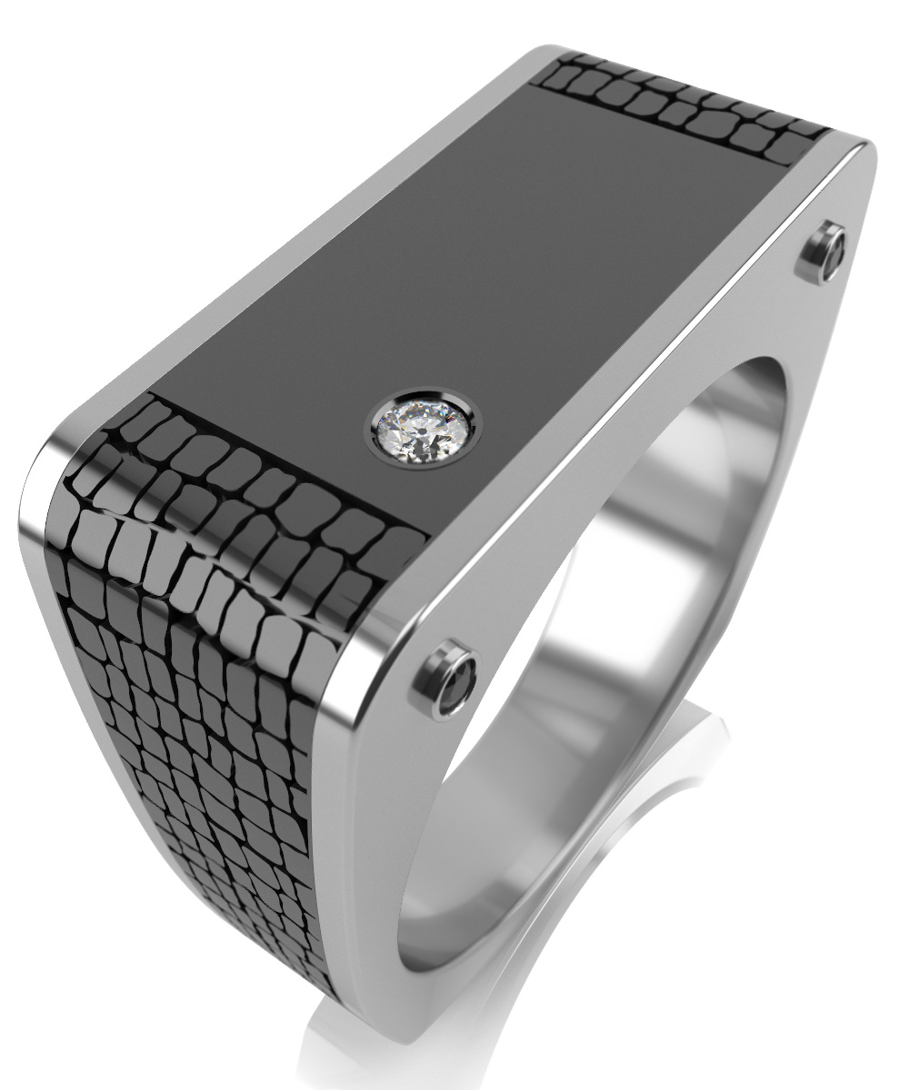 [NAME] => Печатка мужская из серебра с керамикой и фианитом
