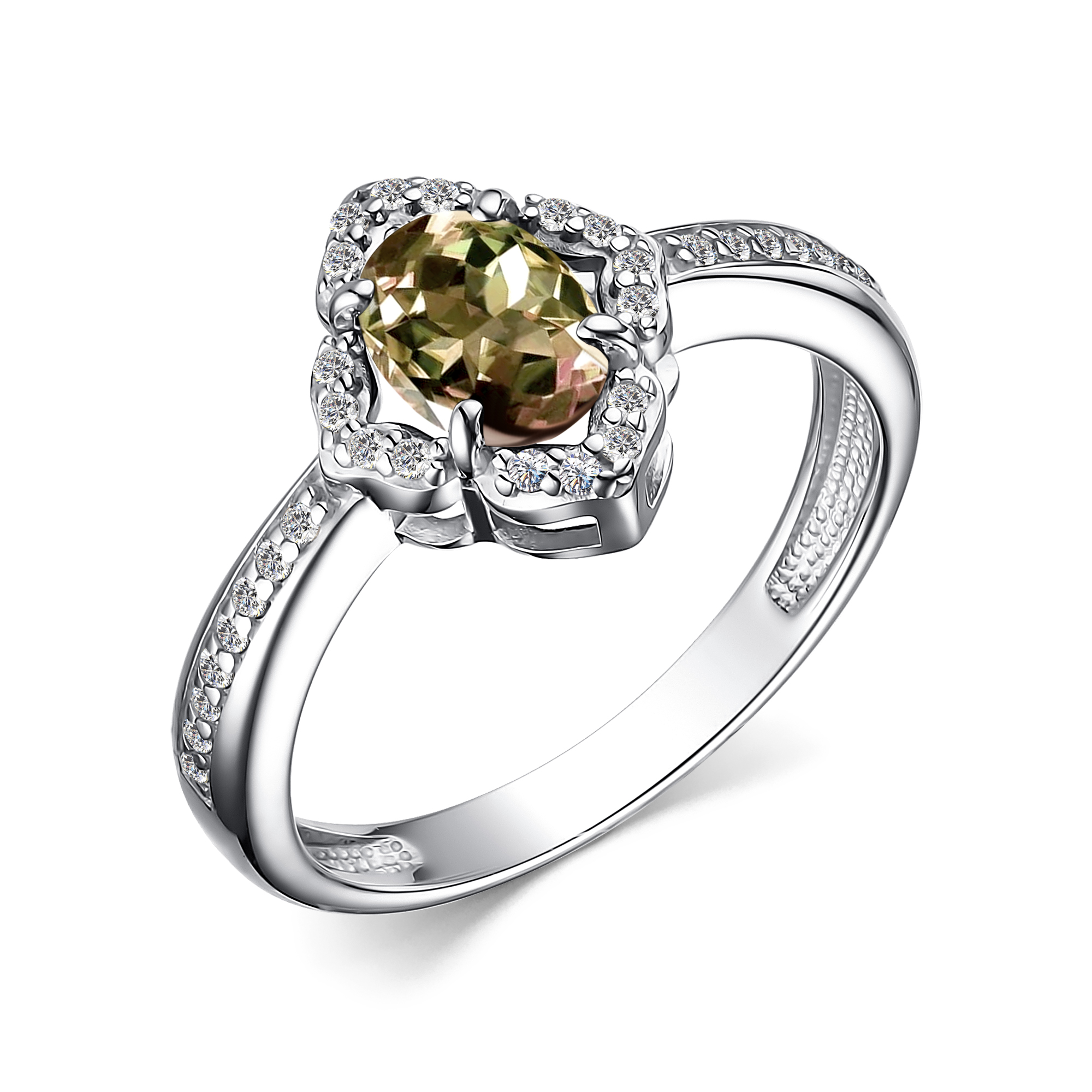 Кольцо из серебра с султанитом иск. и фианитами 134700