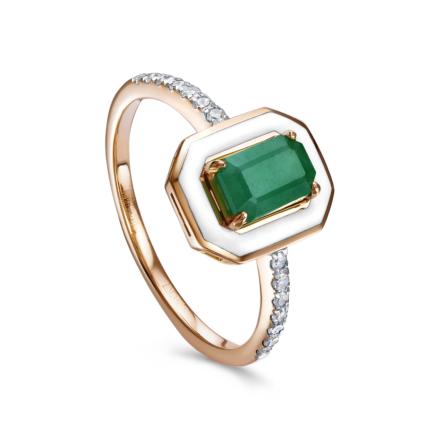 Кольцо из красного золота с изумрудом и бриллиантами 134821