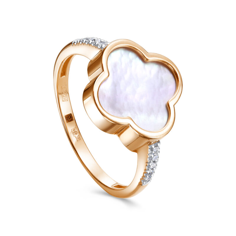 Кольцо из красного золота с перламутром и бриллиантами