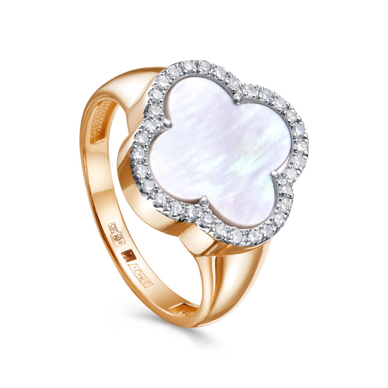 Кольцо из красного золота с перламутром и бриллиантами