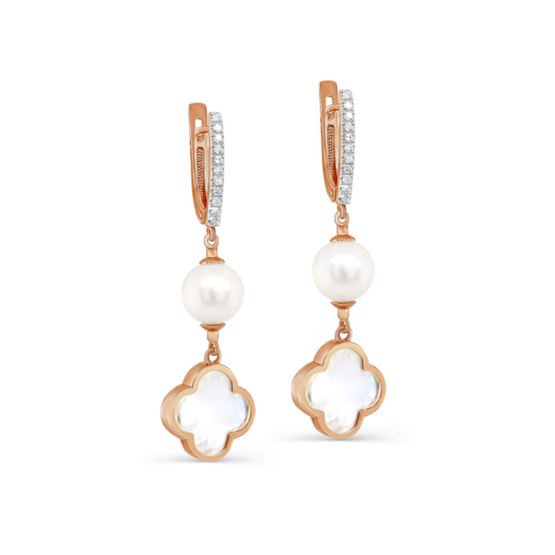 Серьги из красного золота с перламутром, жемчугом и бриллиантами