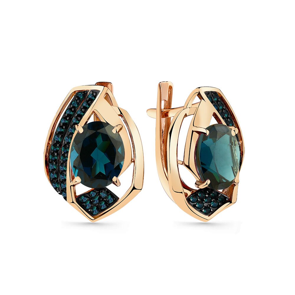 Серьги в красном золоте с лондон топазами и фианитами 139122