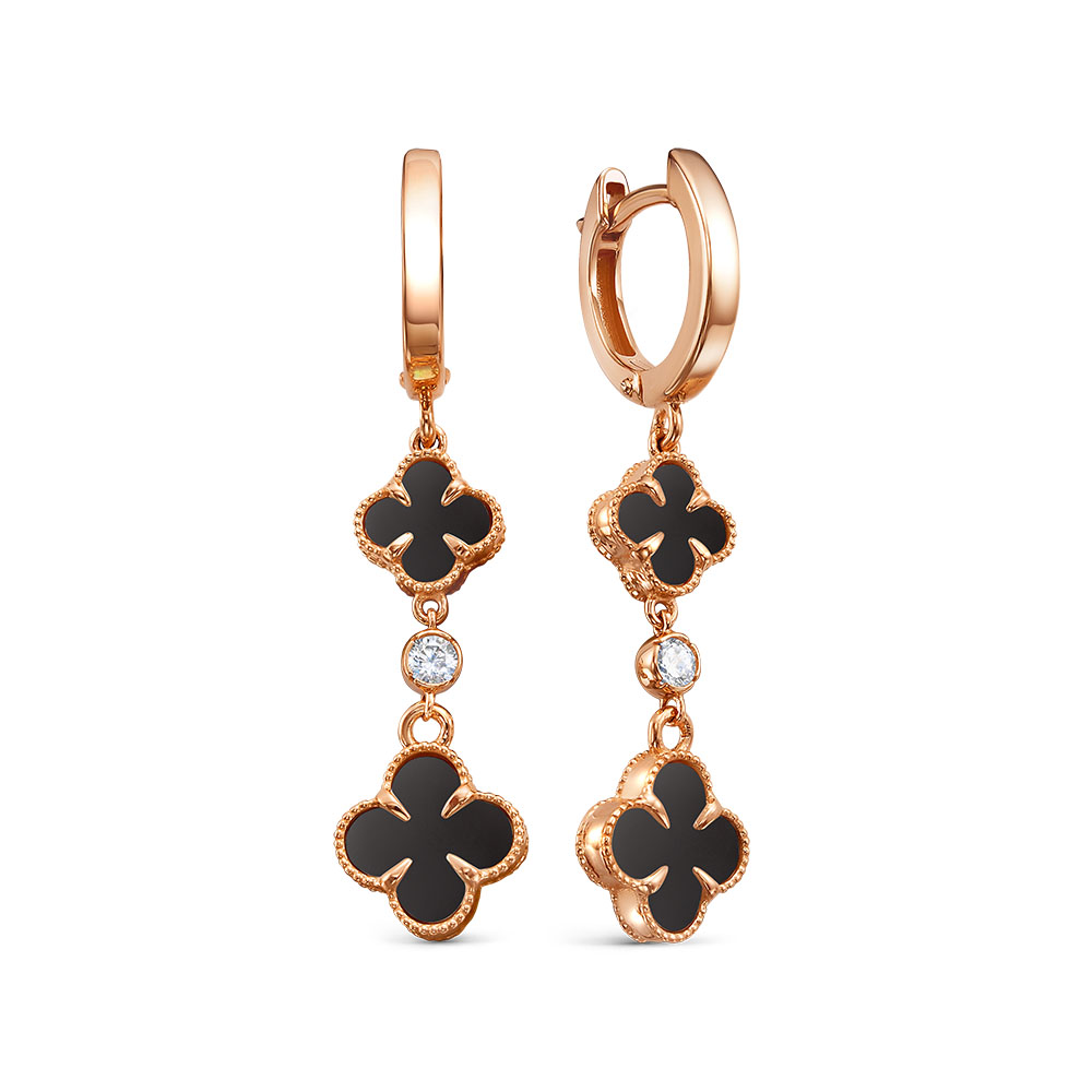 [NAME] => Серьги из красного золота с ониксом и фианитами