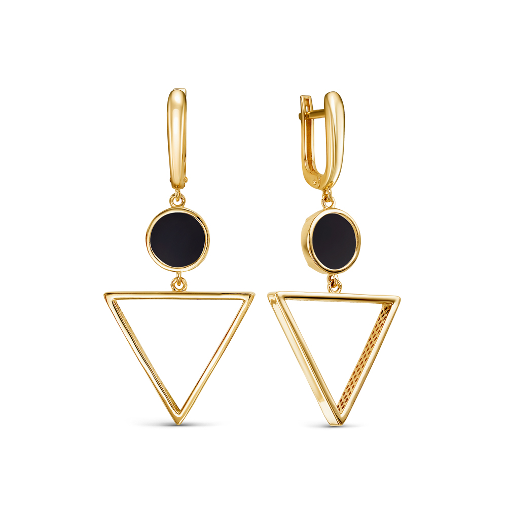 Серьги из желтого золота с ониксом