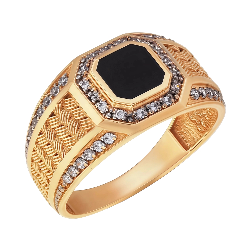 Мужская печатка из красного золота с агатом и фианитами 141794