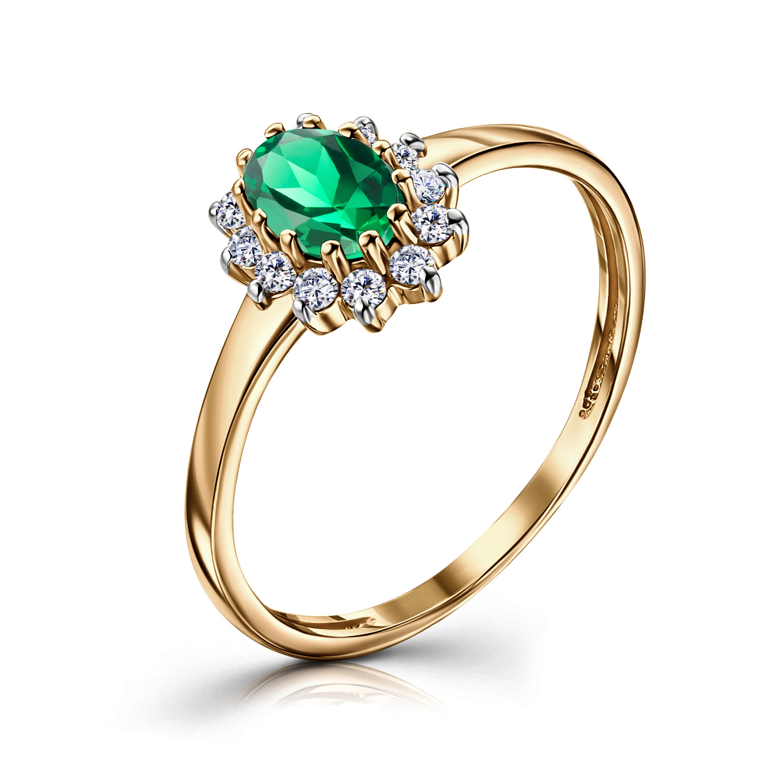 Кольцо из красного золота с изумрудом и бриллиантом 141944