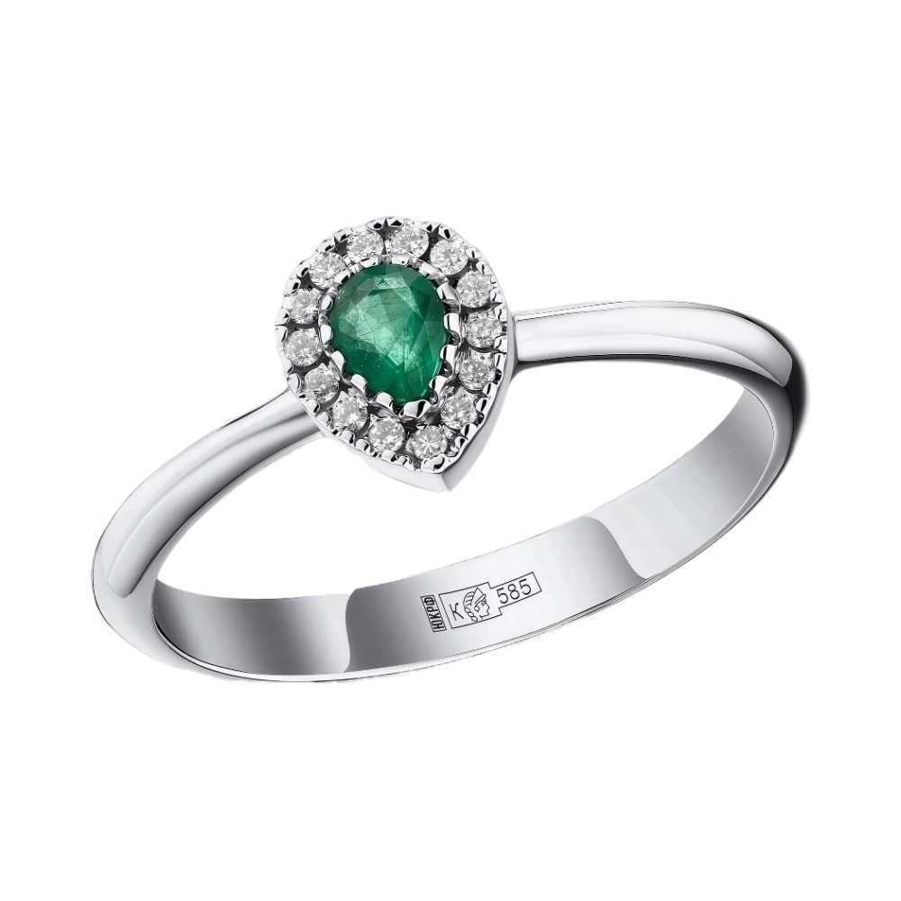 Кольцо из белого золота с изумрудом и бриллиантами