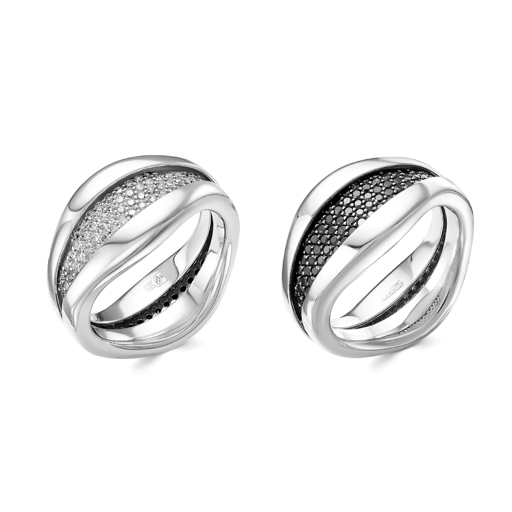 Кольцо из белого золота с чёрными бриллиантами 142046