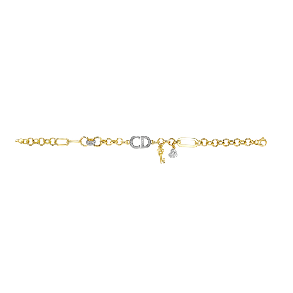Браслет из желтого золота с ониксом и фианитами