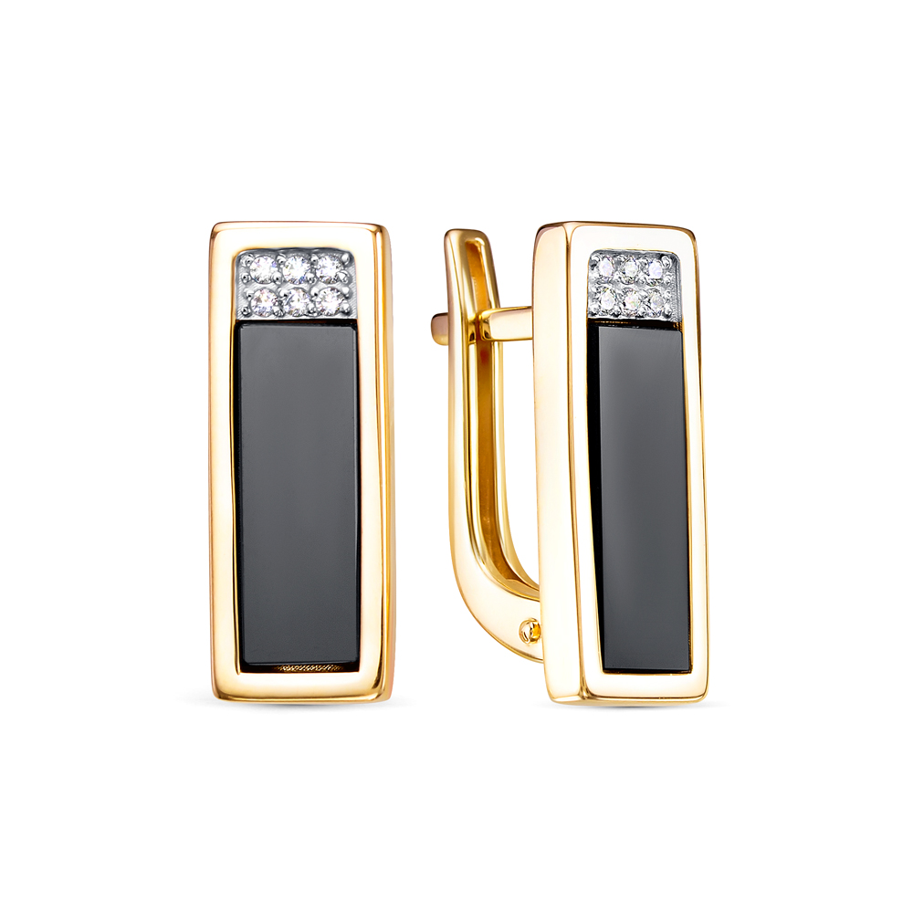 [NAME] => Серьги из желтого золота с ониксом и фианитами