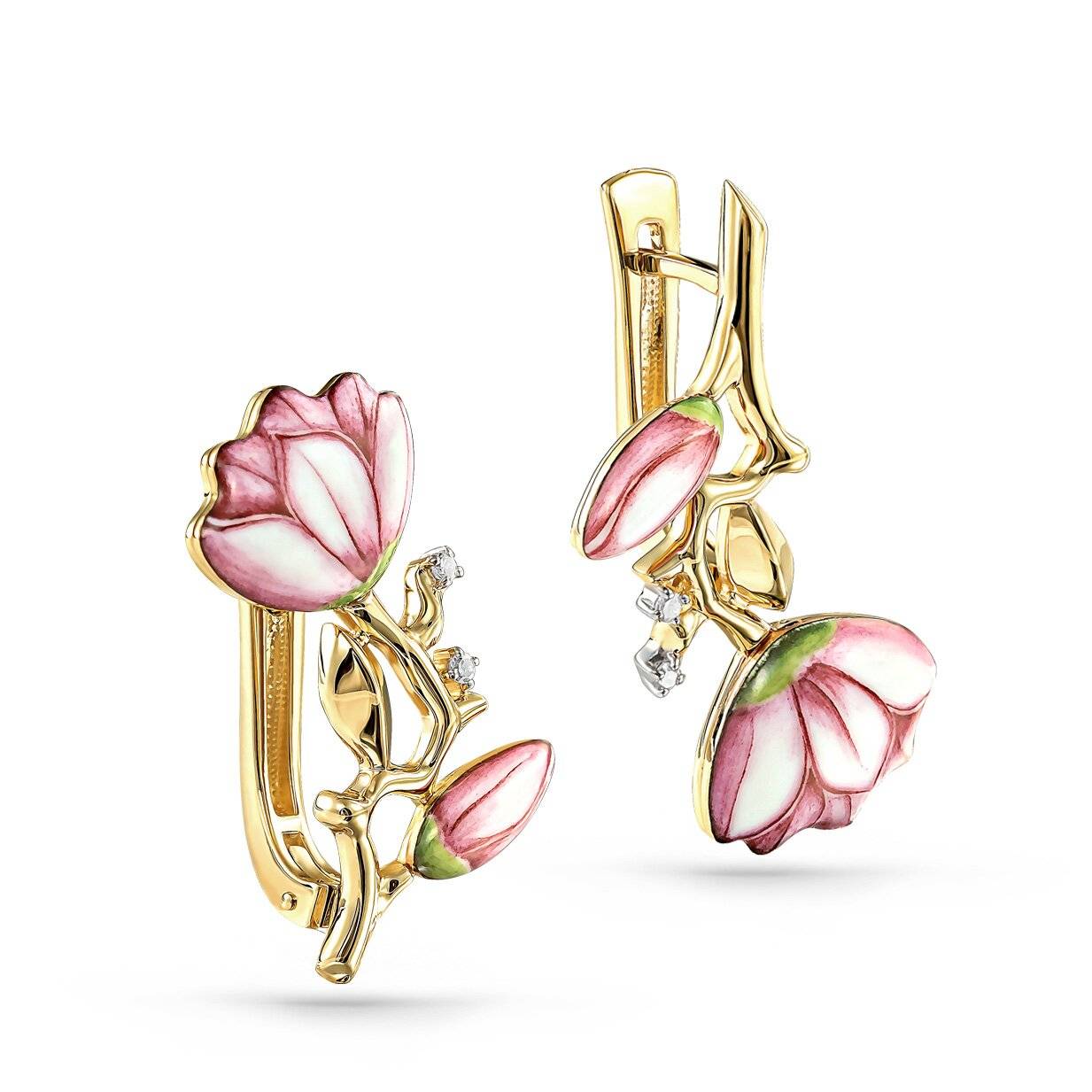 Серьги из желтого золота с бриллиантами и эмалью 142412