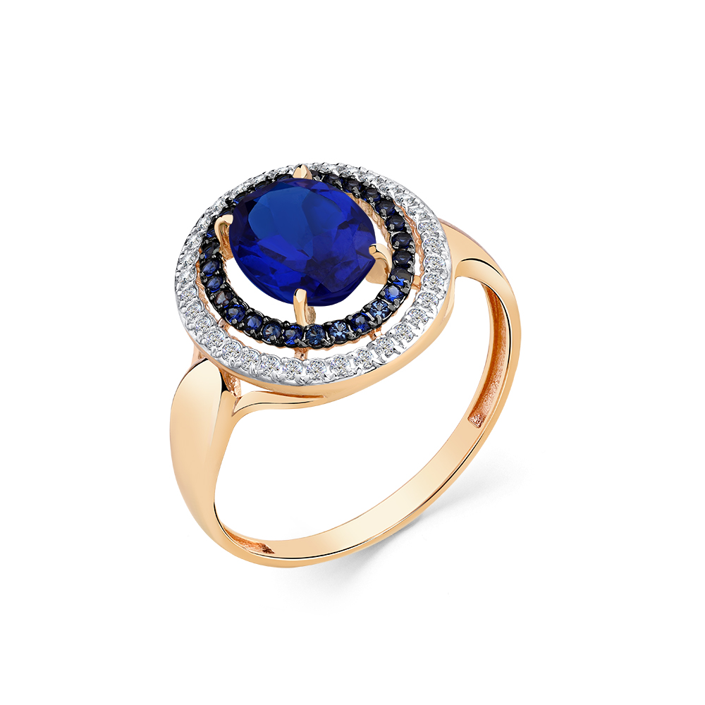 Кольцо из красного золота с сапфиром синтетическим и фианитами 142865