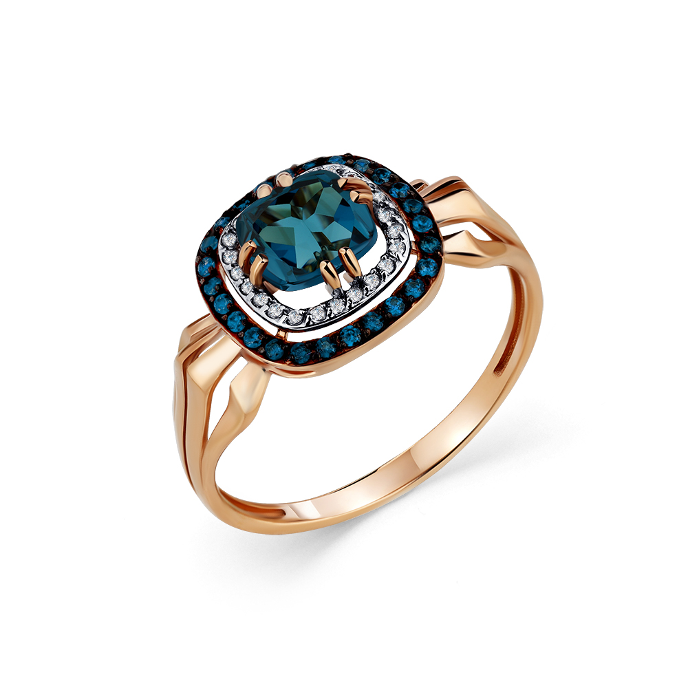 Кольцо из красного золота с топазом и фианитами 142875
