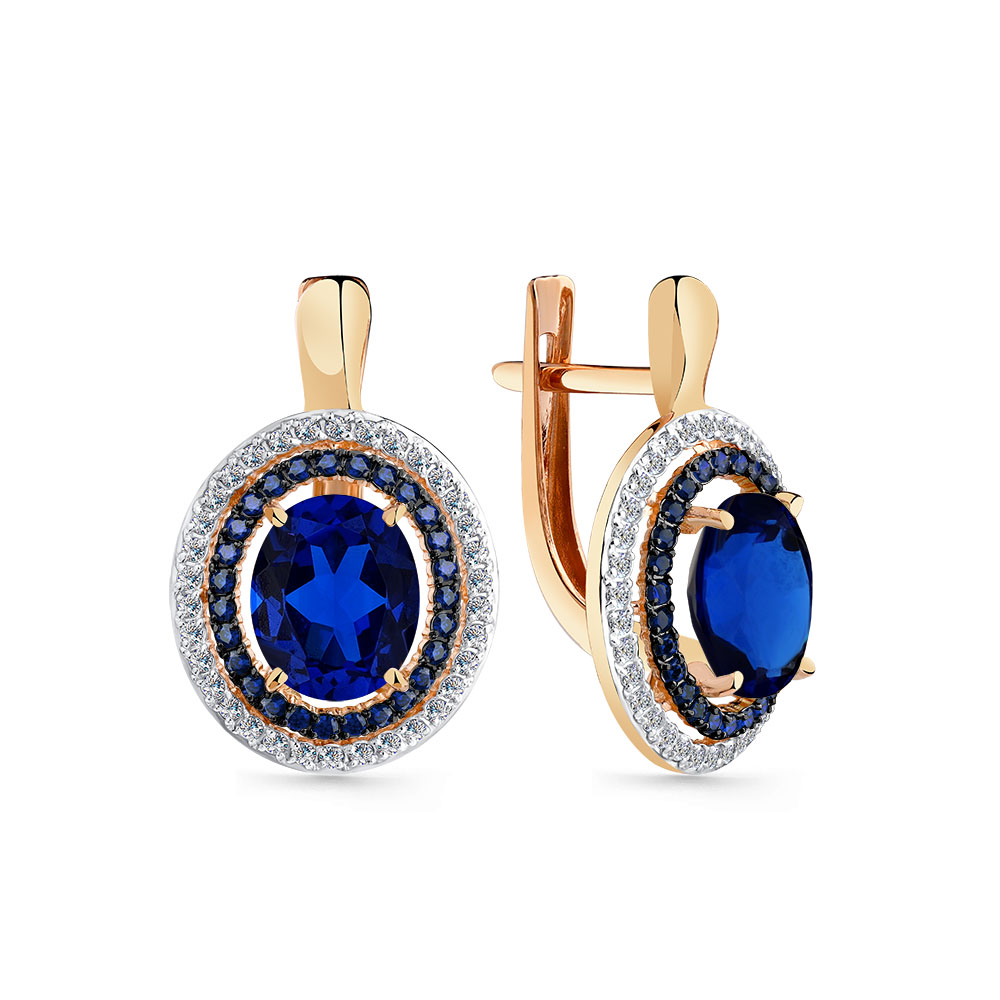 Серьги из красного золота с сапфиром синтетическим и фианитами 142887