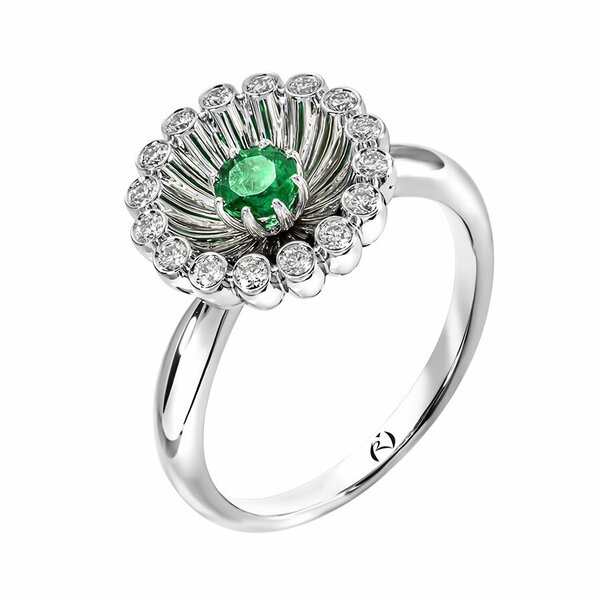 Кольцо из белого золота с бриллиантами и изумрудом 143402
