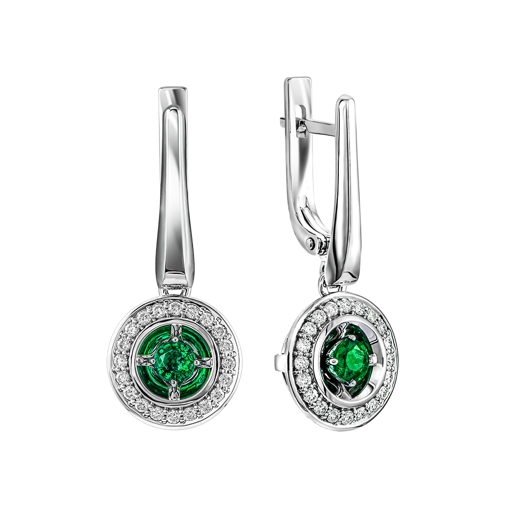 Серьги из белого золота с изумрудами и бриллиантами 143431