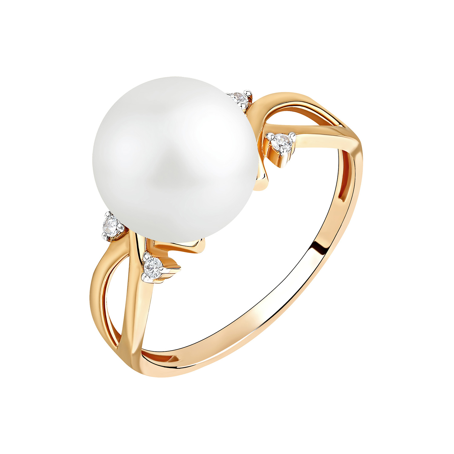 Кольцо из красного золота с жемчугом и фианитами