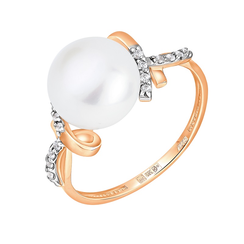 Кольцо из красного золота с жемчугом и фианитами 144099