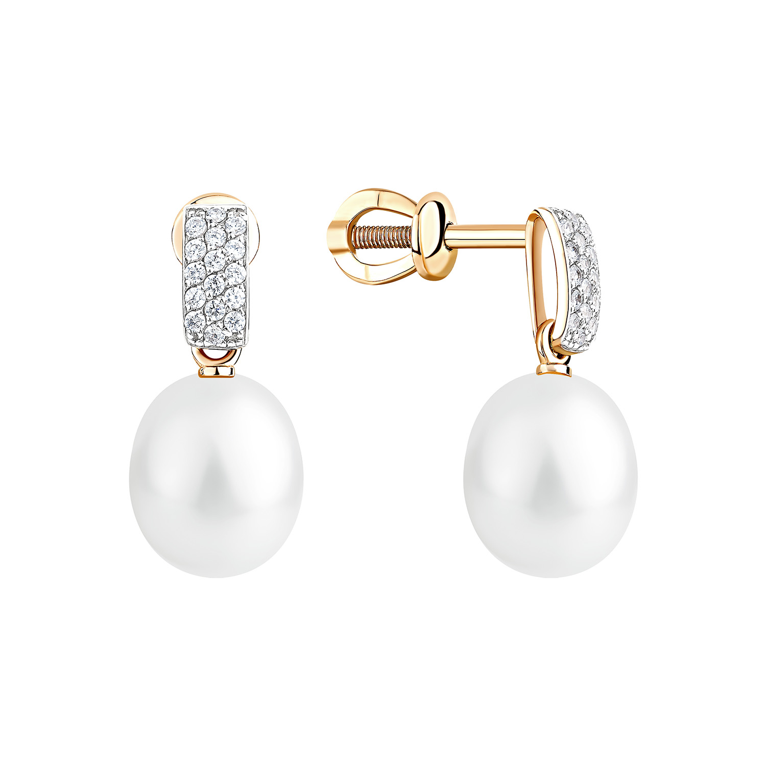 [NAME] => Серьги из красного золота с жемчугом и фианитами