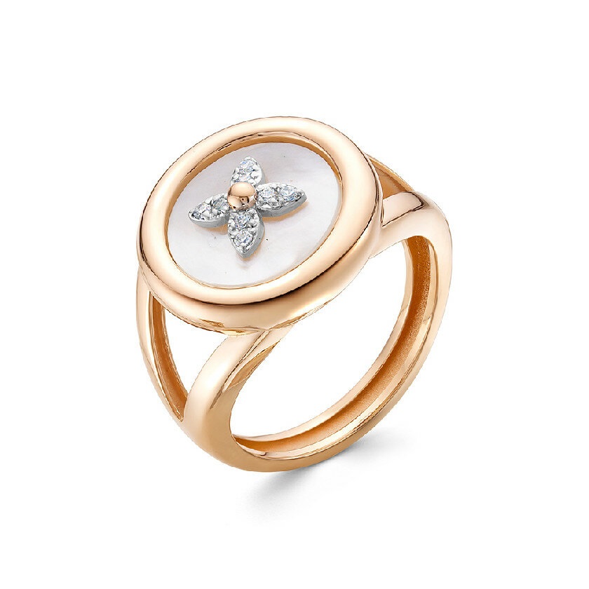 Кольцо в красном золоте с перламутром и фианитами 144300
