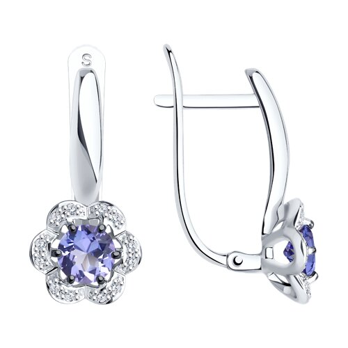 Серьги из белого золота с танзанитом и бриллиантами