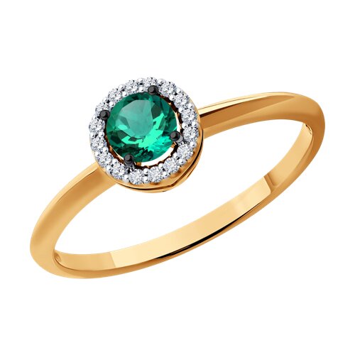Кольцо из красного золота с изумрудом и бриллиантами 144825