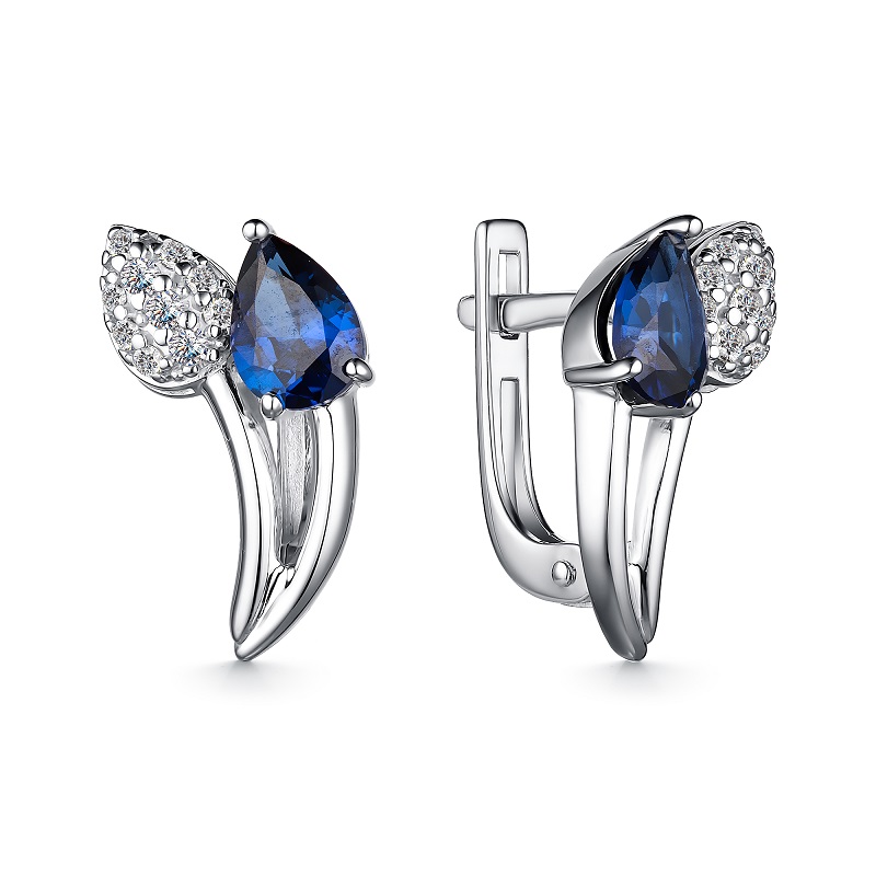 Серьги из серебра с сапфиром ГТ и фианитами 146648