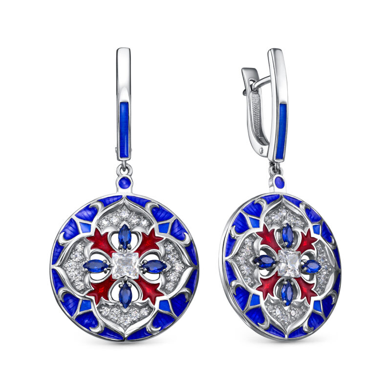 Серьги из серебра с эмалью и фианитами