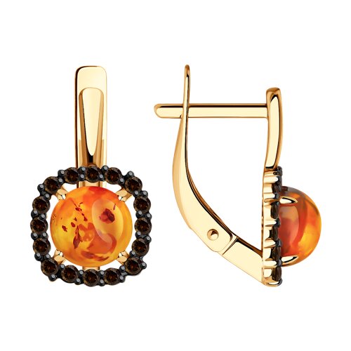 Серьги из красного золота с раух-топазом и янтарем 146765