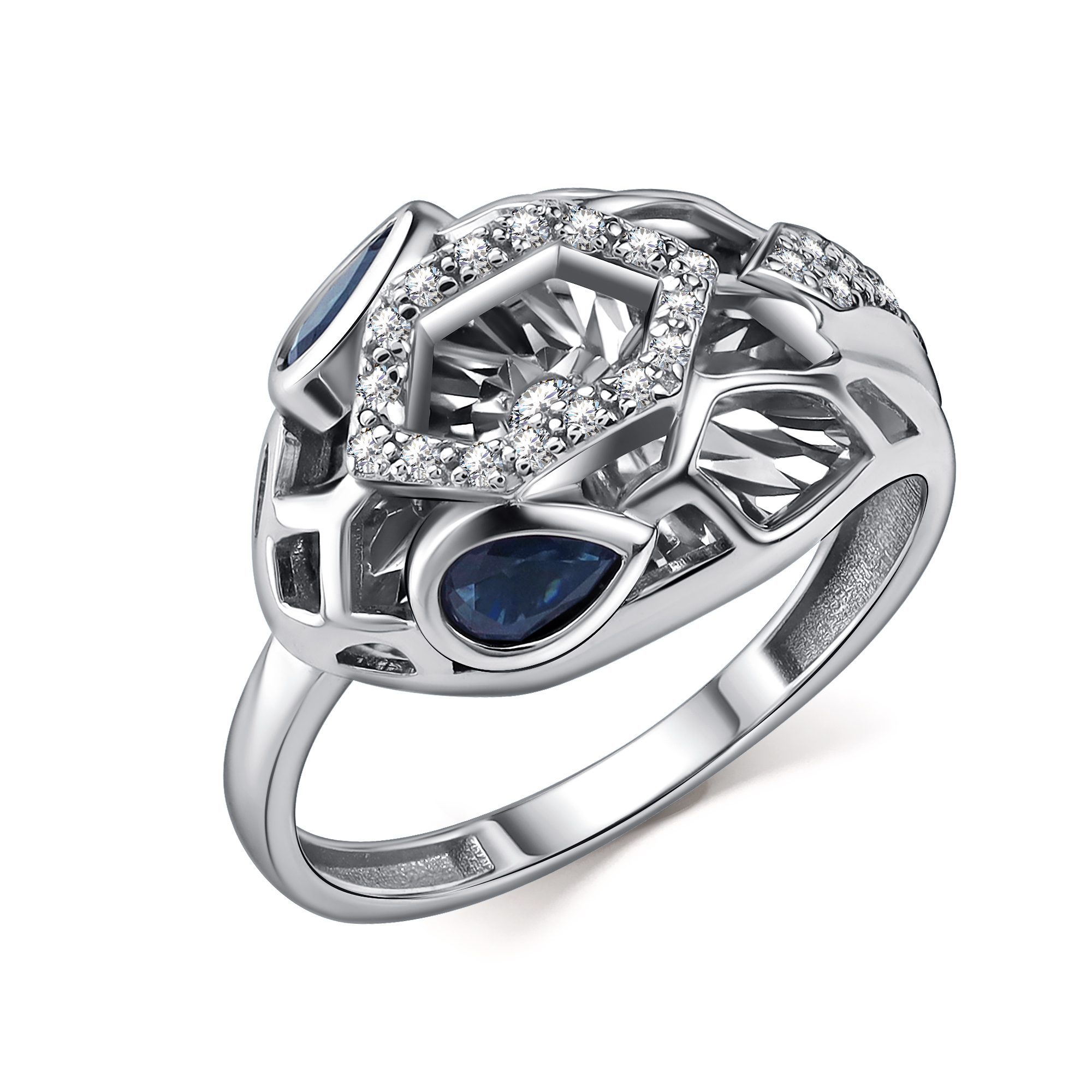 Кольцо из белого золота с сапфирами и бриллиантами