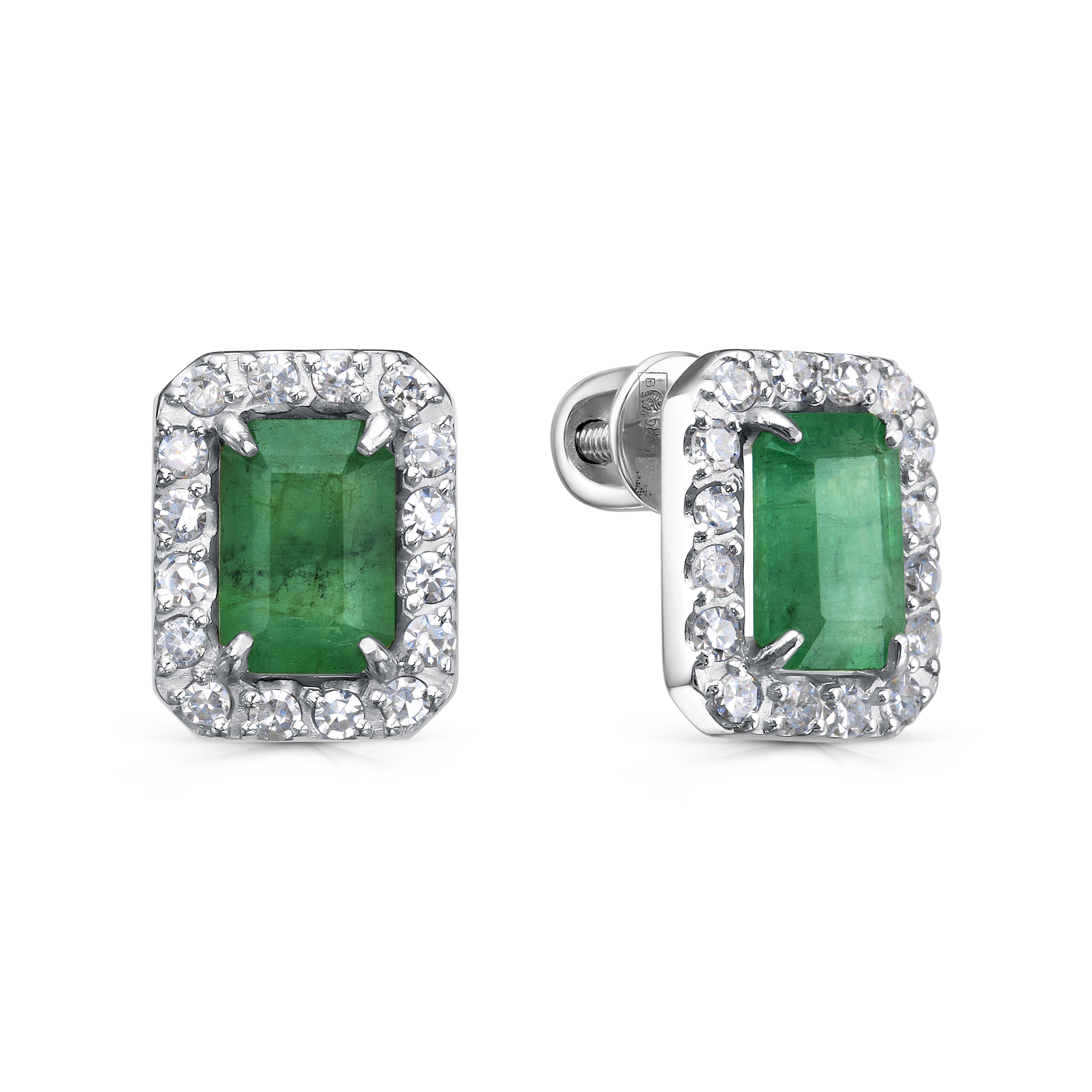 Серьги из белого золота с изумрудами и бриллиантами 147079