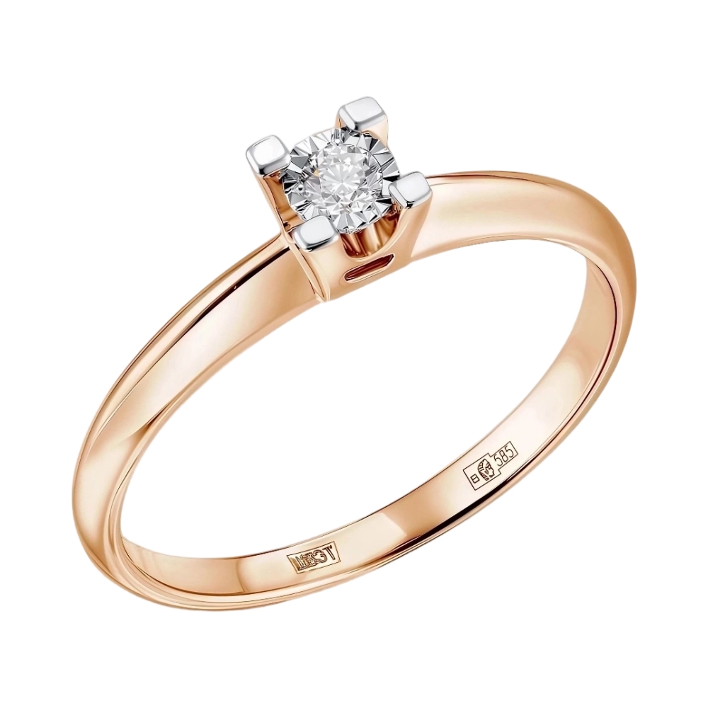 Кольцо помолвочное из красного золота с бриллиантом