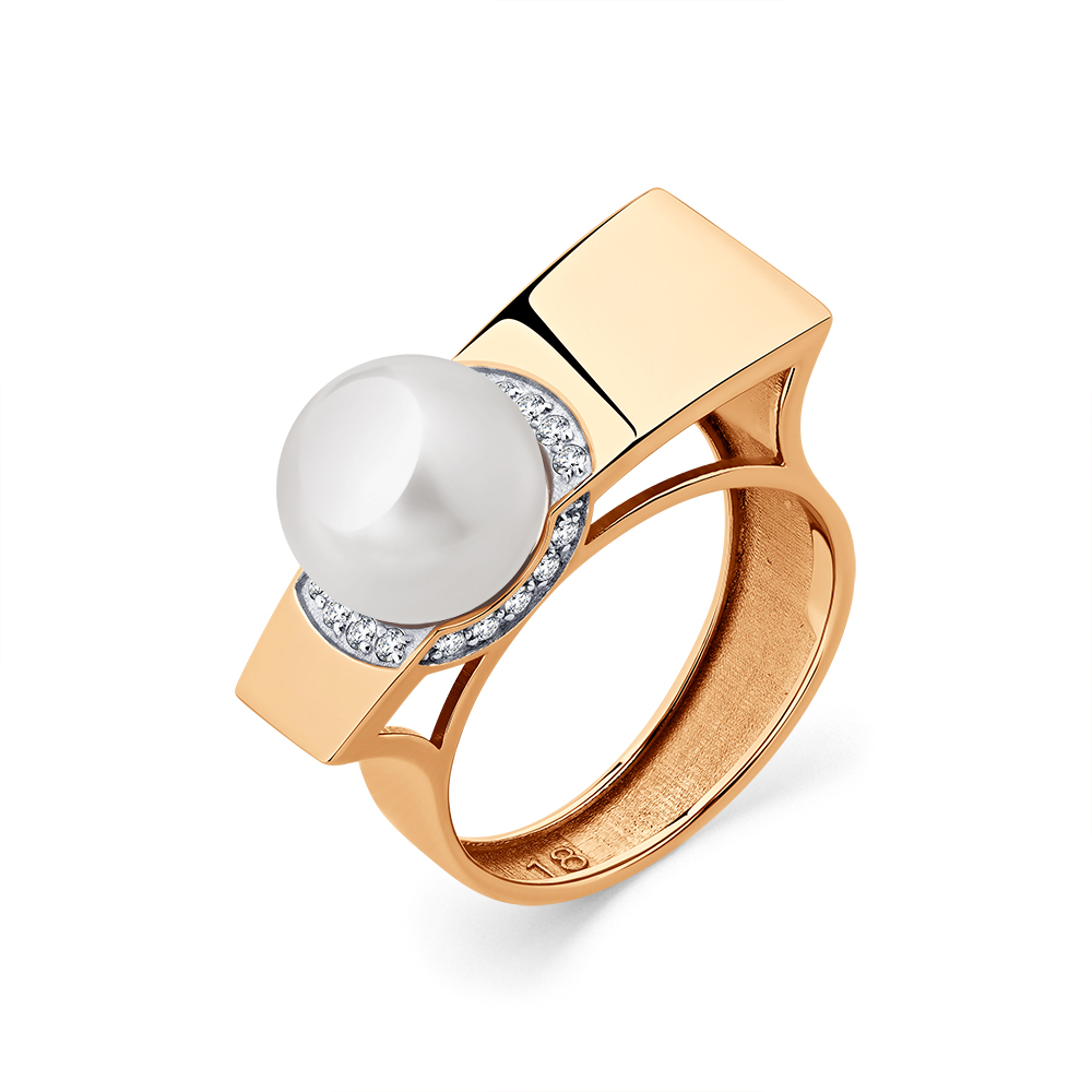 [NAME] => Кольцо из красного золота с жемчугом и фианитами