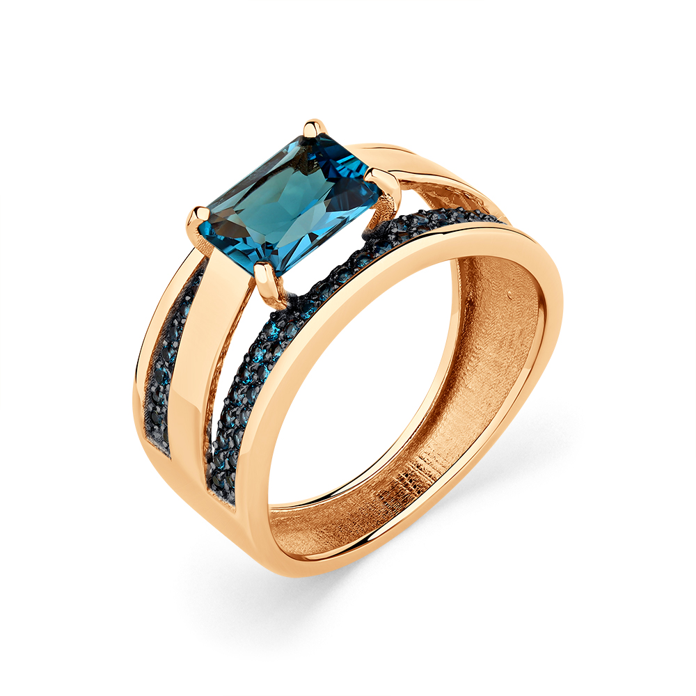 Кольцо из красного золота с лондон топазом и фианитами