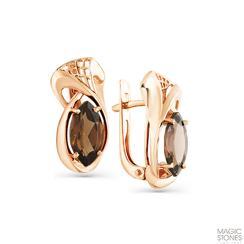 Серьги из красного золота с раух-топазом
