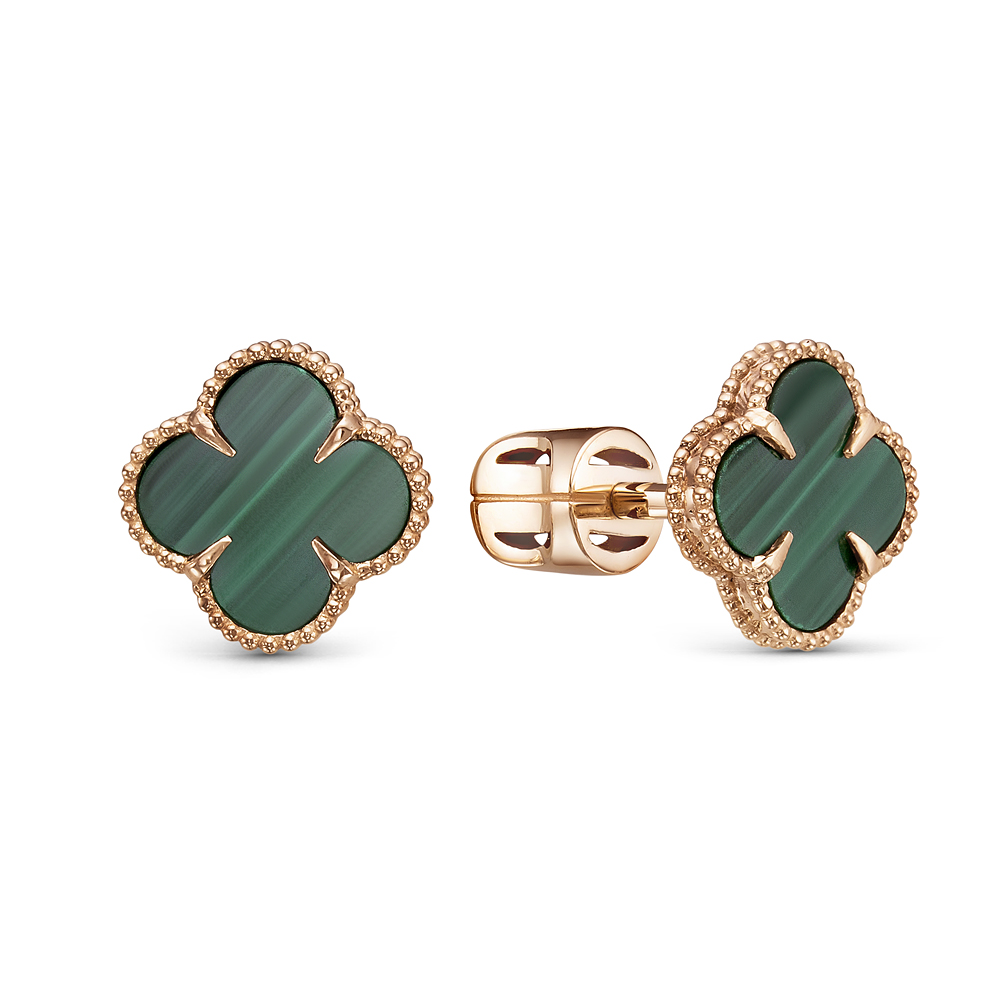 Серьги из красного золота с малахитом