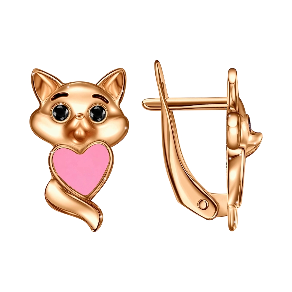 Серьги из красного золота с фианитами и эмалью