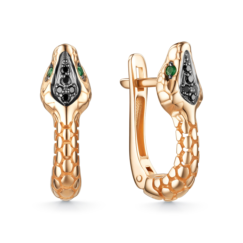 Серьги из красного золота с изумрудами и бриллиантами 151202