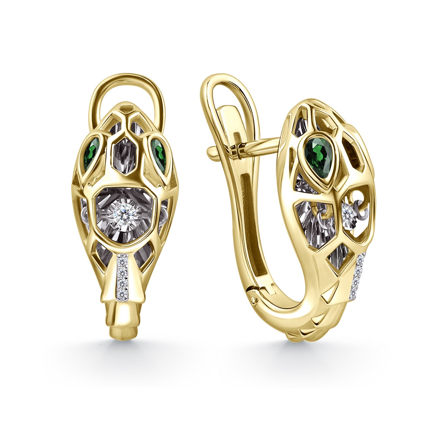 Серьги из желтого золота с изумрудами и бриллиантами 151370