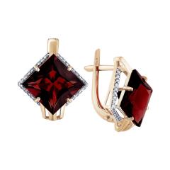 Серьги из красного золота с гранатом и фианитами