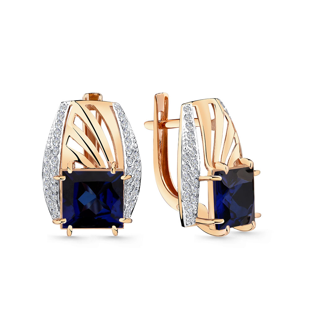 Серьги из красного золота с сапфиром синтетическим и фианитами