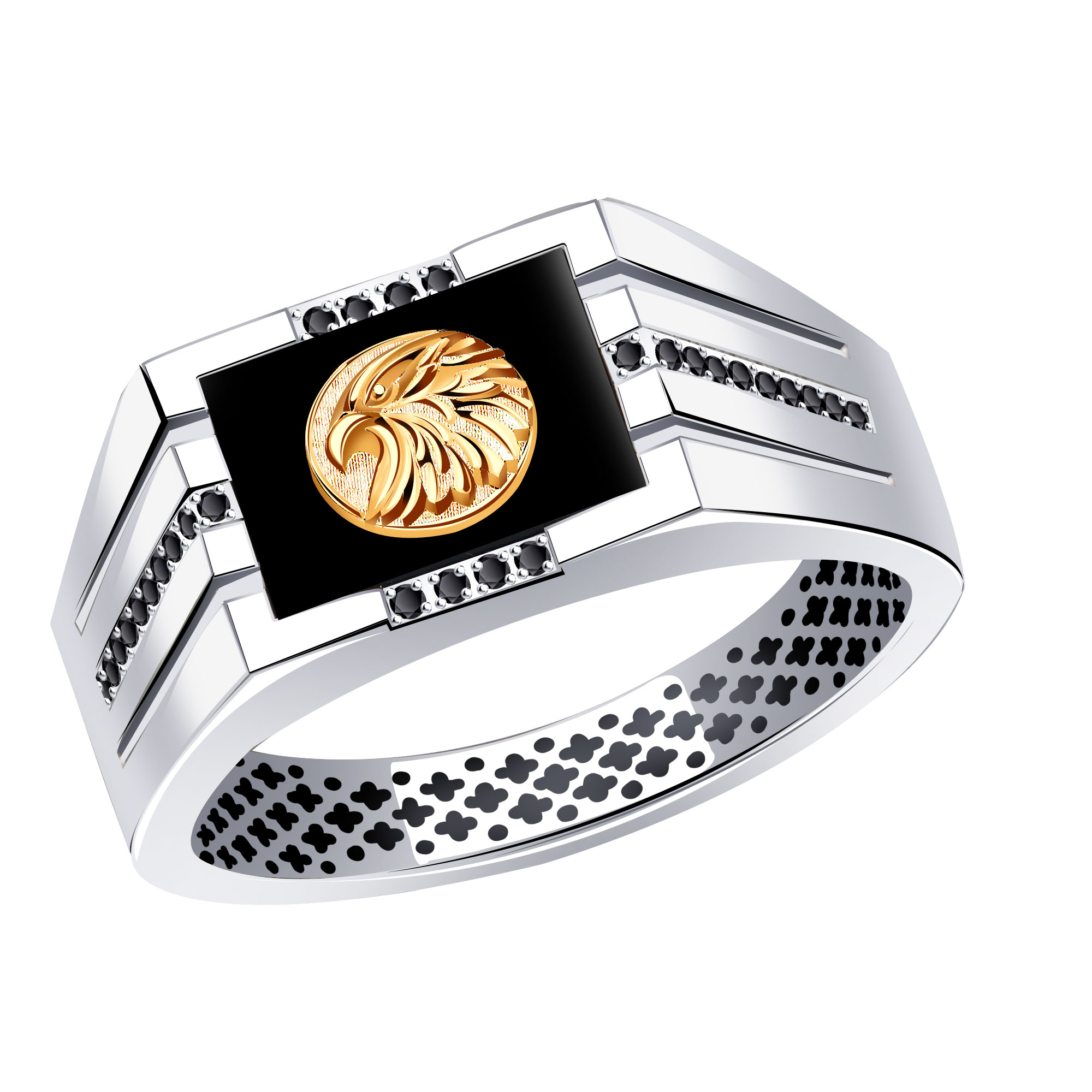 Кольцо из белого золота с ониксом и фианитами