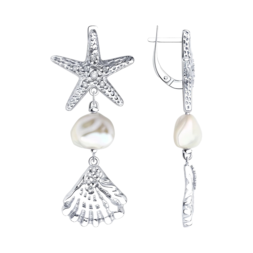 [NAME] => Серьги из серебра с жемчугом и фианитами