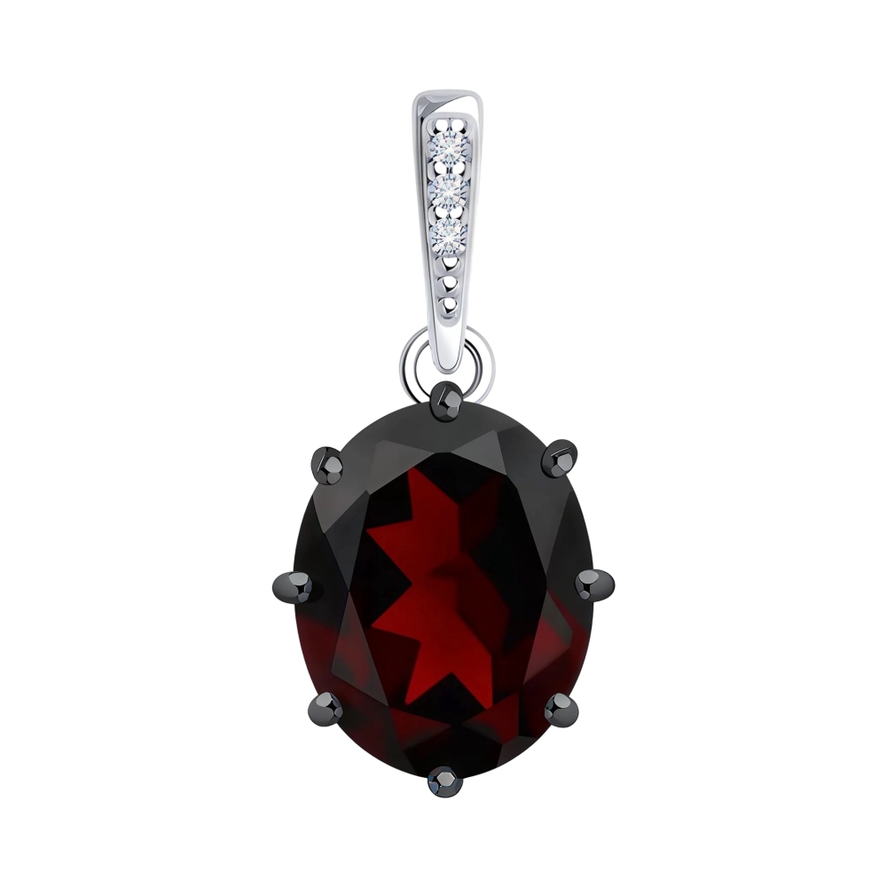 Подвеска из серебра с гранатом и фианитами